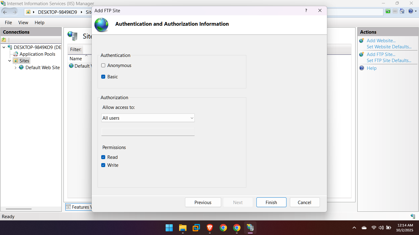 You can create an FTP server in Windows 11 using the built-in Internet Information Services (IIS) feature.