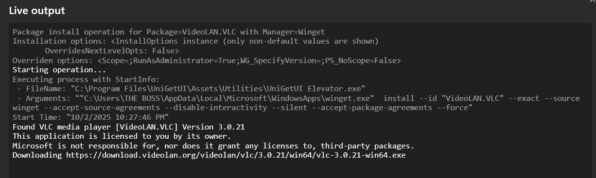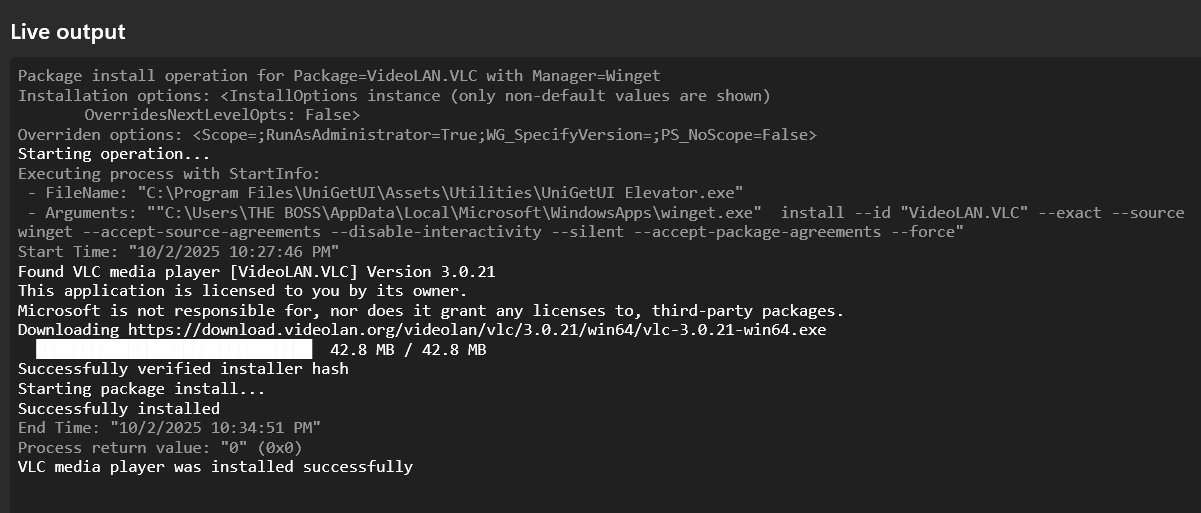The application will be downloaded and installed silently in the background without pop-ups. UniGetUI handles the technical details, giving you an instant notification upon completion.