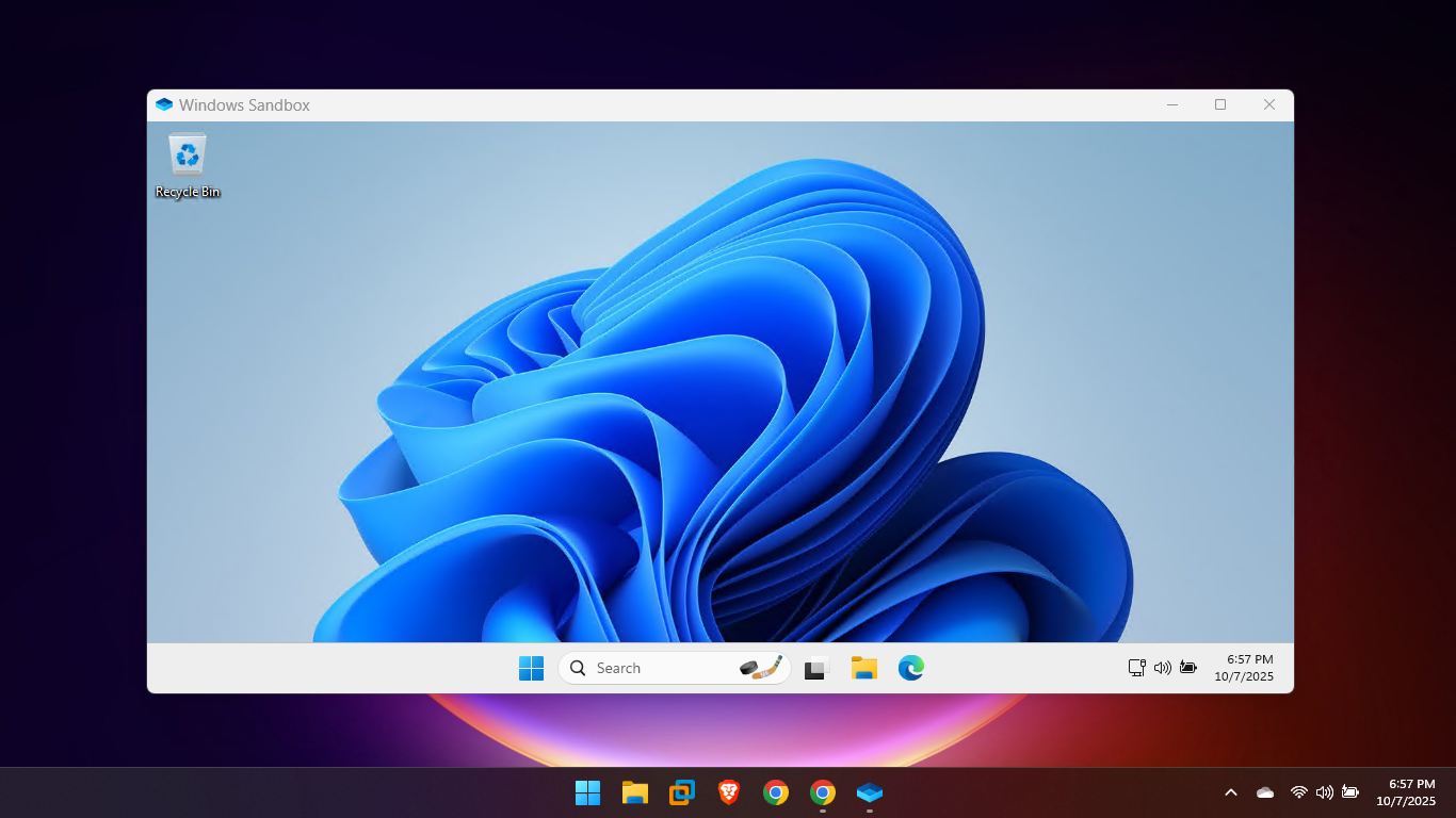 A new, isolated desktop environment will open. Everything you do inside this window is separate from your main operating system and will be permanently deleted when you close the Sandbox.